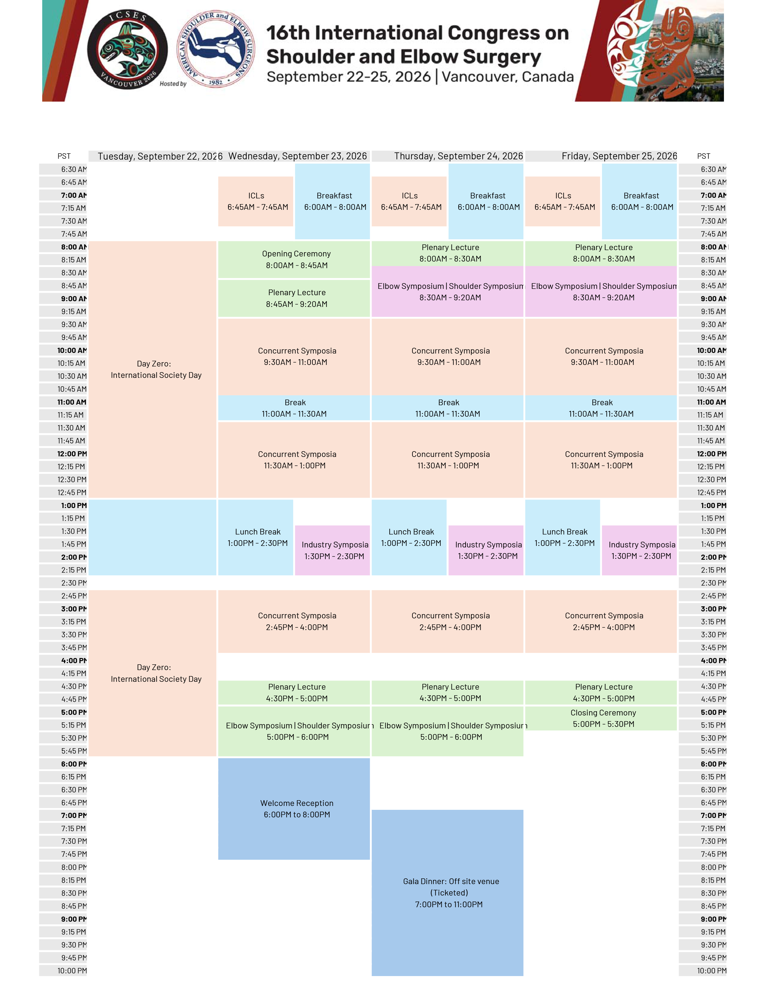 The 16th International Congress on Shoulder and Elbow Surgery (ICSES 2026) will feature a dynamic and comprehensive scientific program designed to inspire, inform, and connect the global orthopedic community. Stay tuned to our website for updates on the full scientific program and detailed session information coming soon.